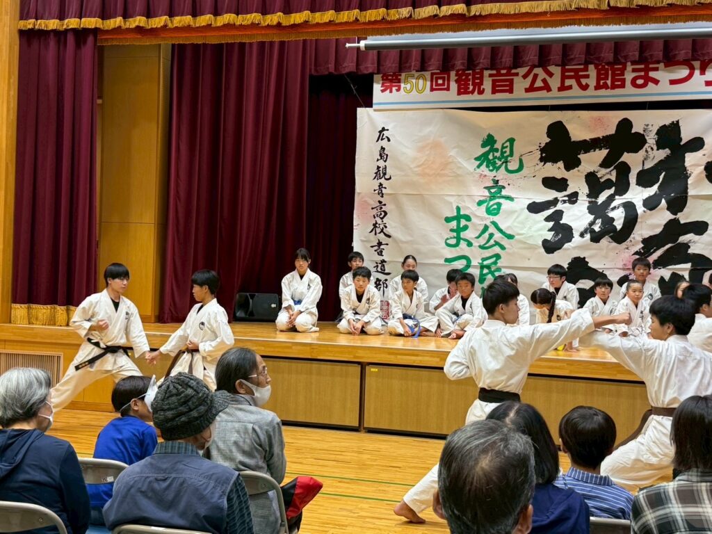 広島市観音公民館「第50回観音公民館まつり」にて拳道会観音クラブジュニアの道場生たちが空手道演武を披露しました。